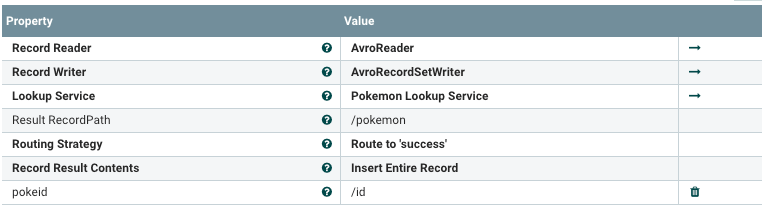 • This is the expected input after the QueryDatabaseTableRecord before the LookupRecord processor: